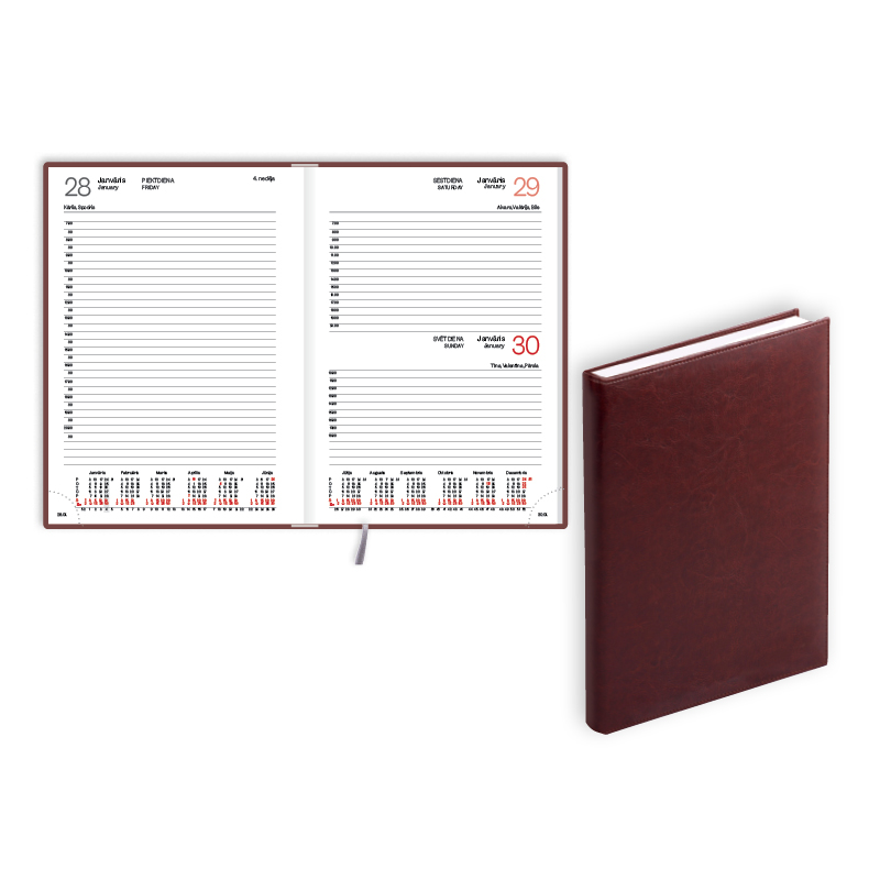 Plānotājs 2026.gadam EKO Manager A5, diena, mākslīgā āda,brūns
