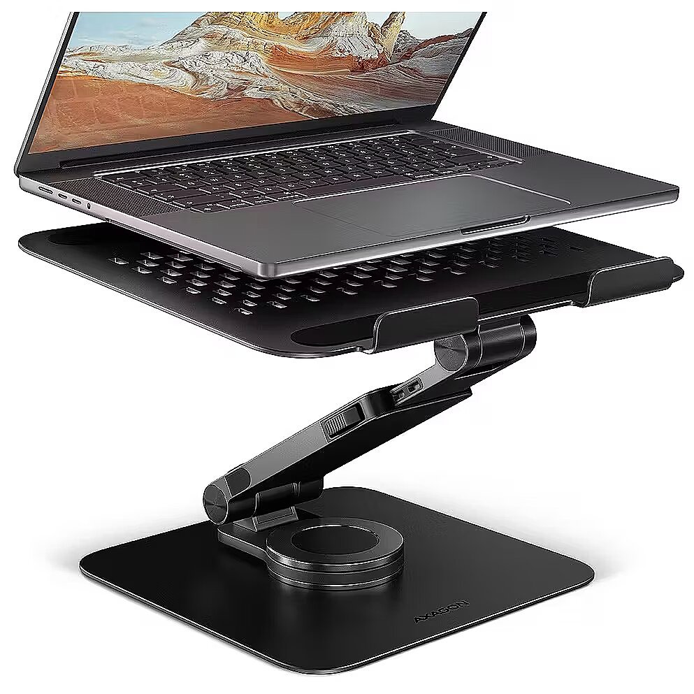 Axagon STND-LRB Laptop-Ständer, 360° drehbar, Doppelgelenk, verlängerbar - schwarz