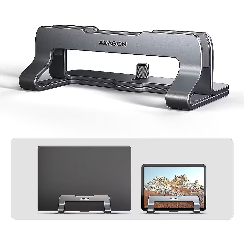 Axagon STND-VG Vertikaler Laptop-Ständer, einstellbare Breite, Aluminium - grau