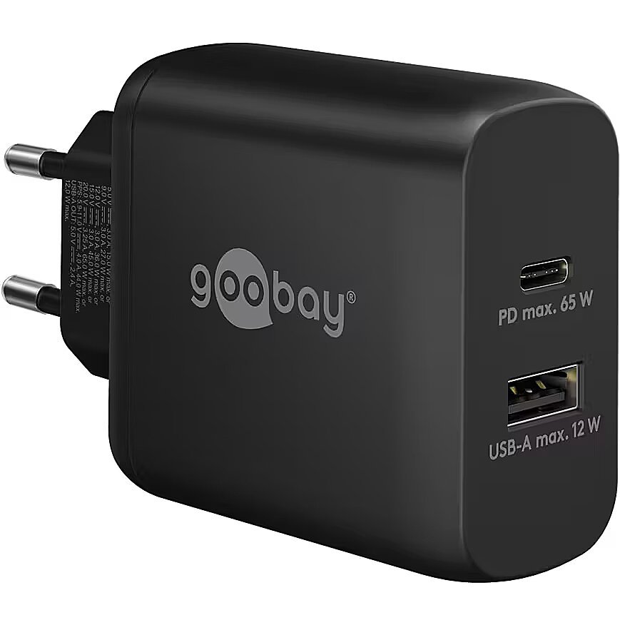 Goobay USB-C™ PD Dual-Schnellladegerät (65 W) schwarz