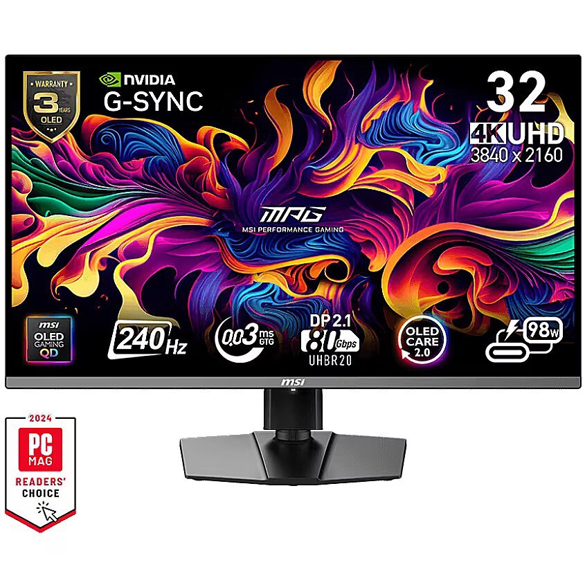 MSI MPG 322URX QD-OLED 31.5inch QD-OLED UHD 240HZ 0.03 ms DP 2.1a 2xHDMI 2.1 USB-C 3x USB 3.2 Headphone Tilt Height Pivot Swivel