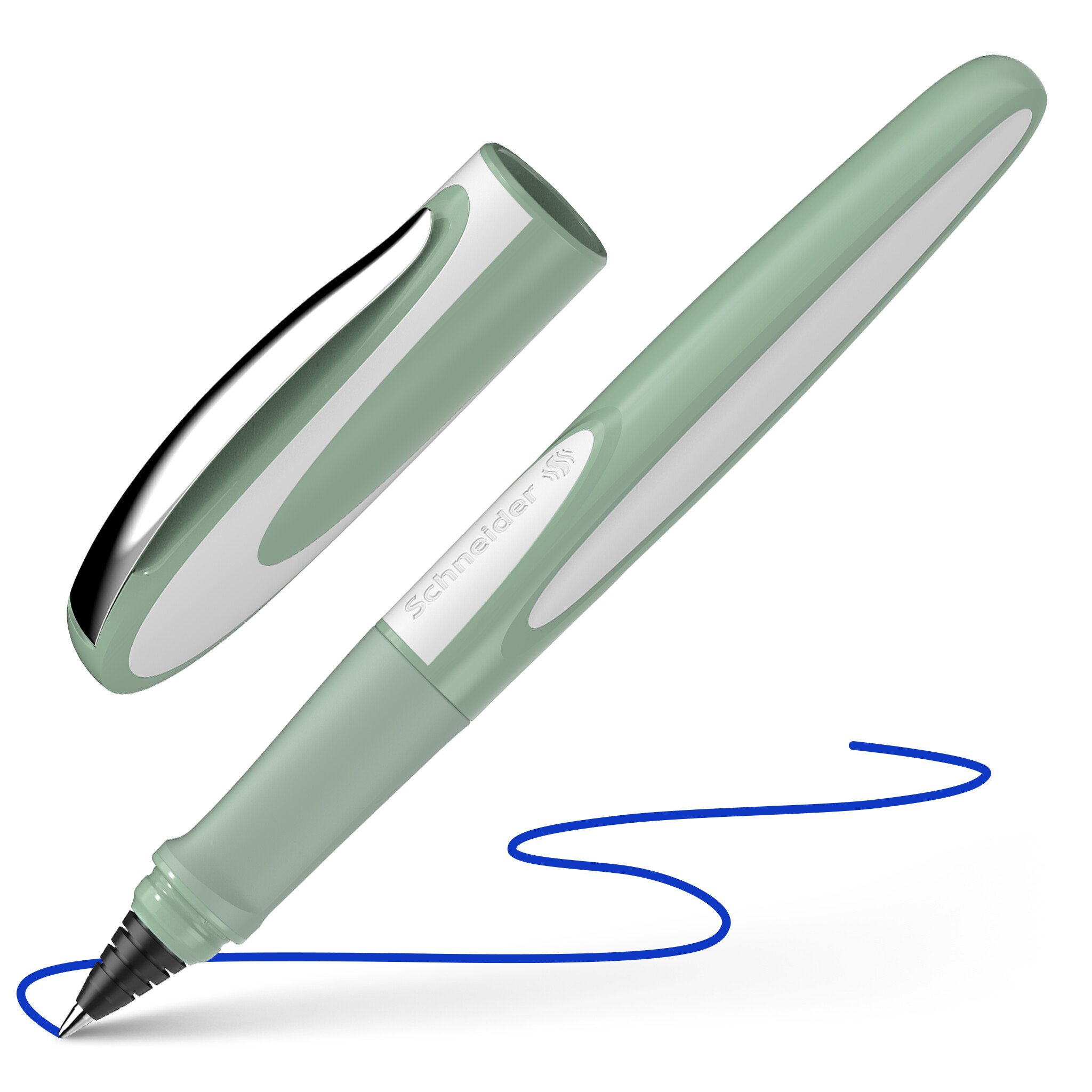 Kapsulas pildspalva SCHNEIDER RAY, zaļa korpuss (pistacchio), piemērota gan labročiem, gan kreisročiem