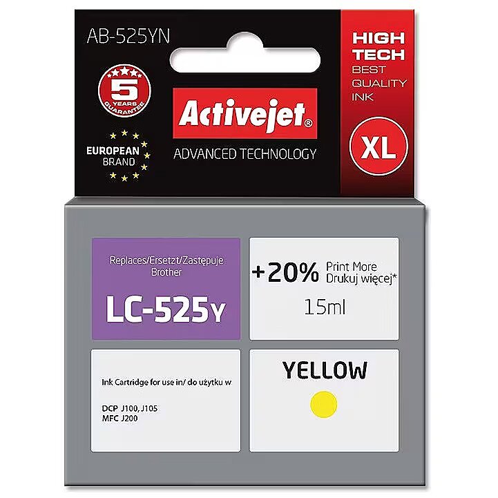 ActiveJet AB-525YN (zamiennik Brother LC525Y; Supreme; 15 ml; żółty)