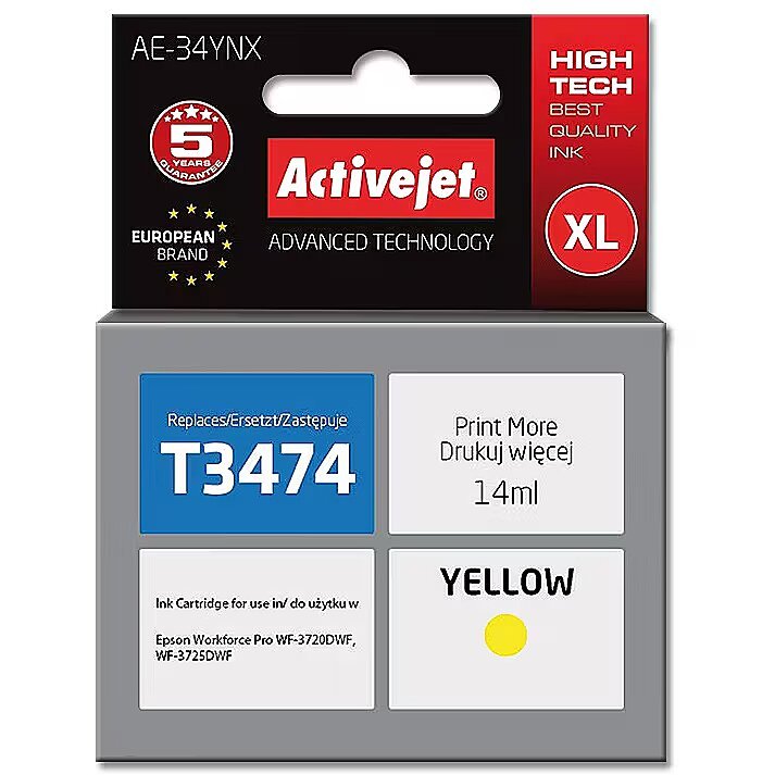 ActiveJet AE-34YNX Ink Cartridge (replacement for Epson 34XL T3474; Supreme; 14 ml; yellow)