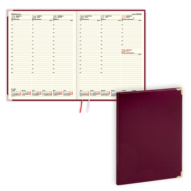 • Balacron materiālam divi metāla stūrīši un gadskaitļa uzspiedums uz muguriņas